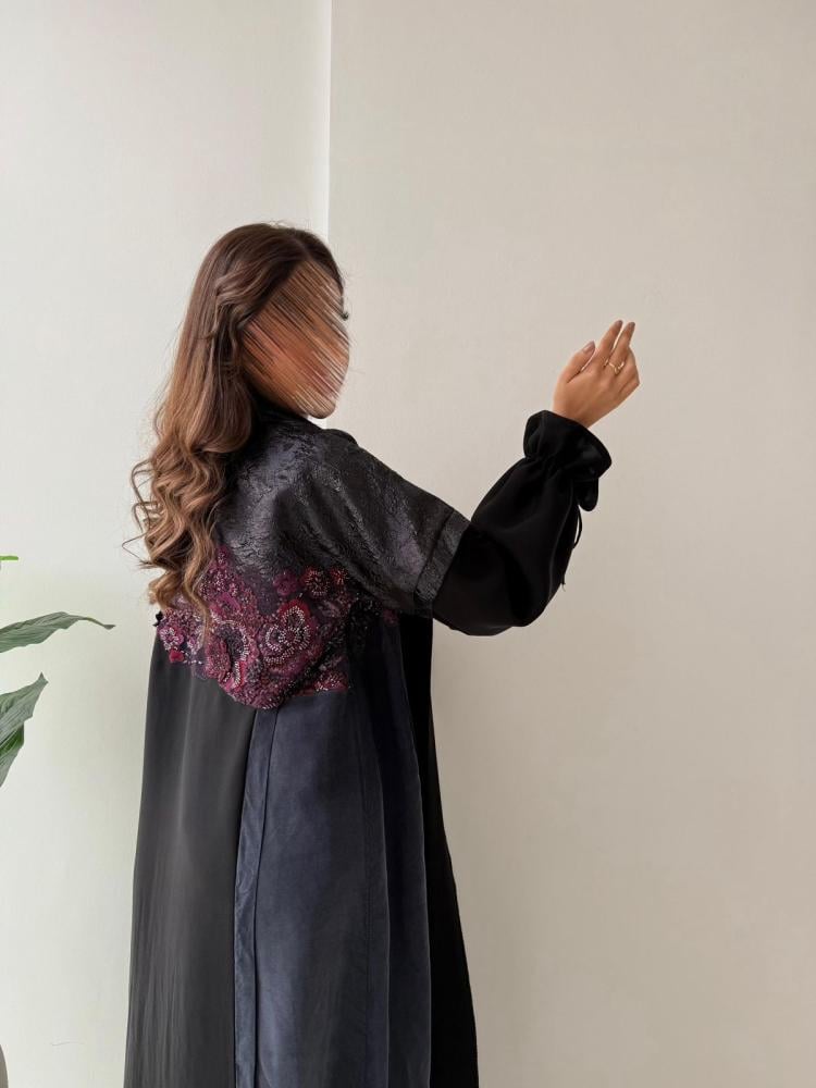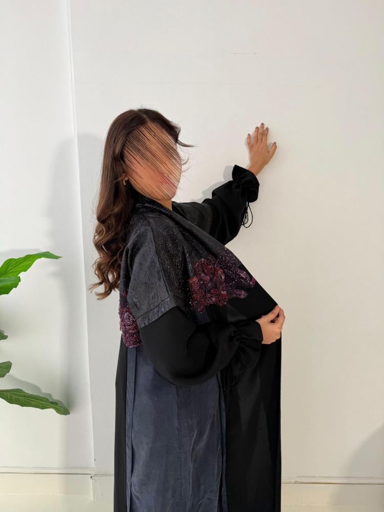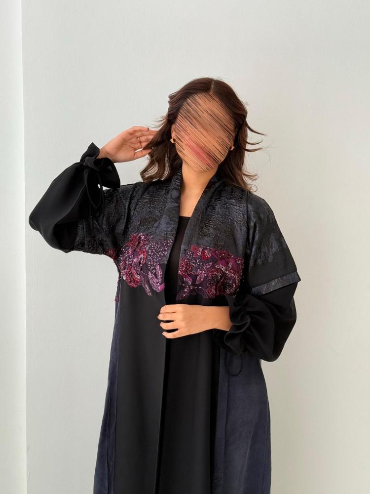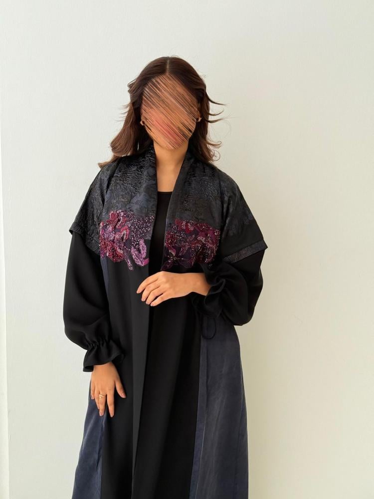 عبايه من القماش الكريب ومن الجوانب حرير مغسول كحلي