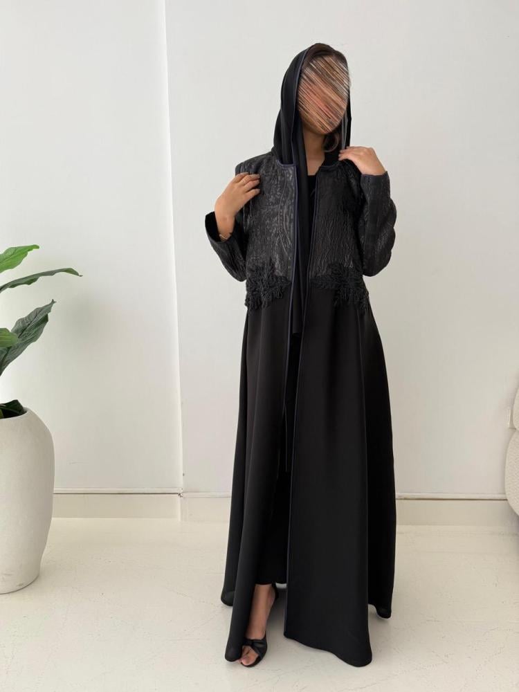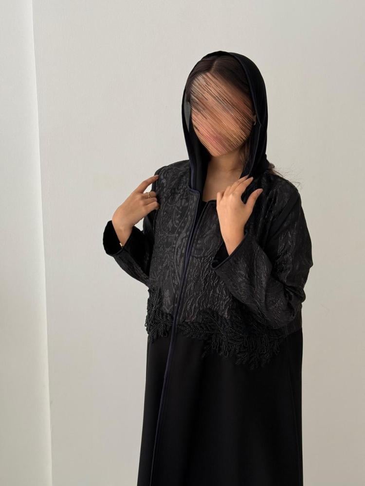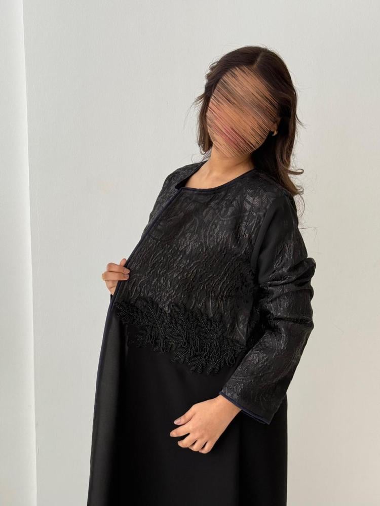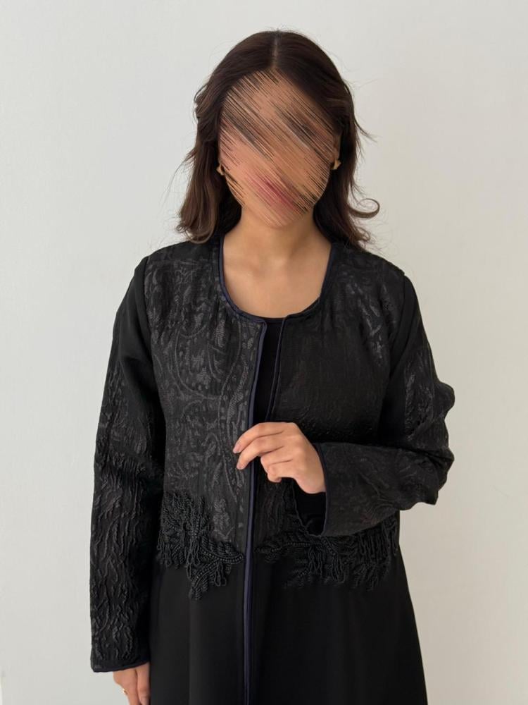 عبايه من الكريب والجاكيت ومطرز من الأمام